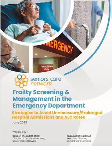 The Guidance Document is intended to support the implementation of proactive frailty screening and management in hospital Emergency Departments (EDs); a strategy to prevent repeat/prolonged hospitalizations and ALC rates. It outlines how an older adult’s (65 plus) ‘Frailty Status’ can be used as a criterion to inform decisions regarding care, flow, and transitions (i.e., from the ED to back in the community and/or acute care). The 4-step approach described in the document builds on recommendations made in the ALC Leading Practices and Ontario Health Operational Direction: Home First documents. This resource was developed through extensive consultations with colleagues across the Province, and includes key implementation considerations (with relevant metrics) to track changes.